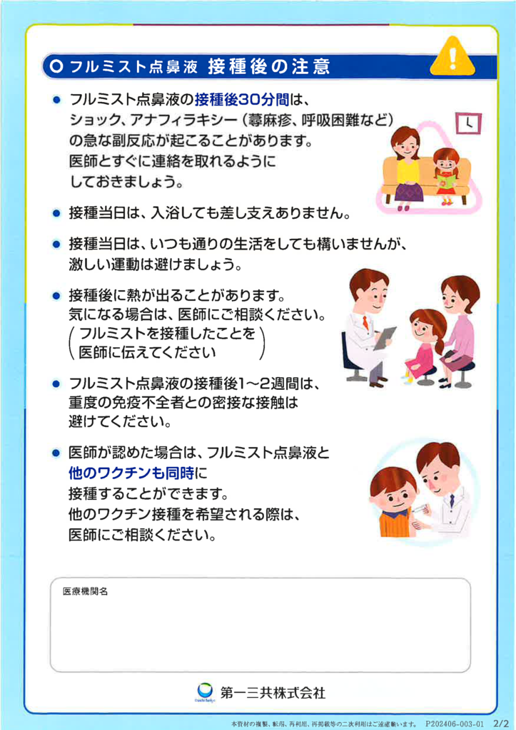 鼻へ噴霧するタイプのインフルエンザワクチンフルミストⓇのおしらせ